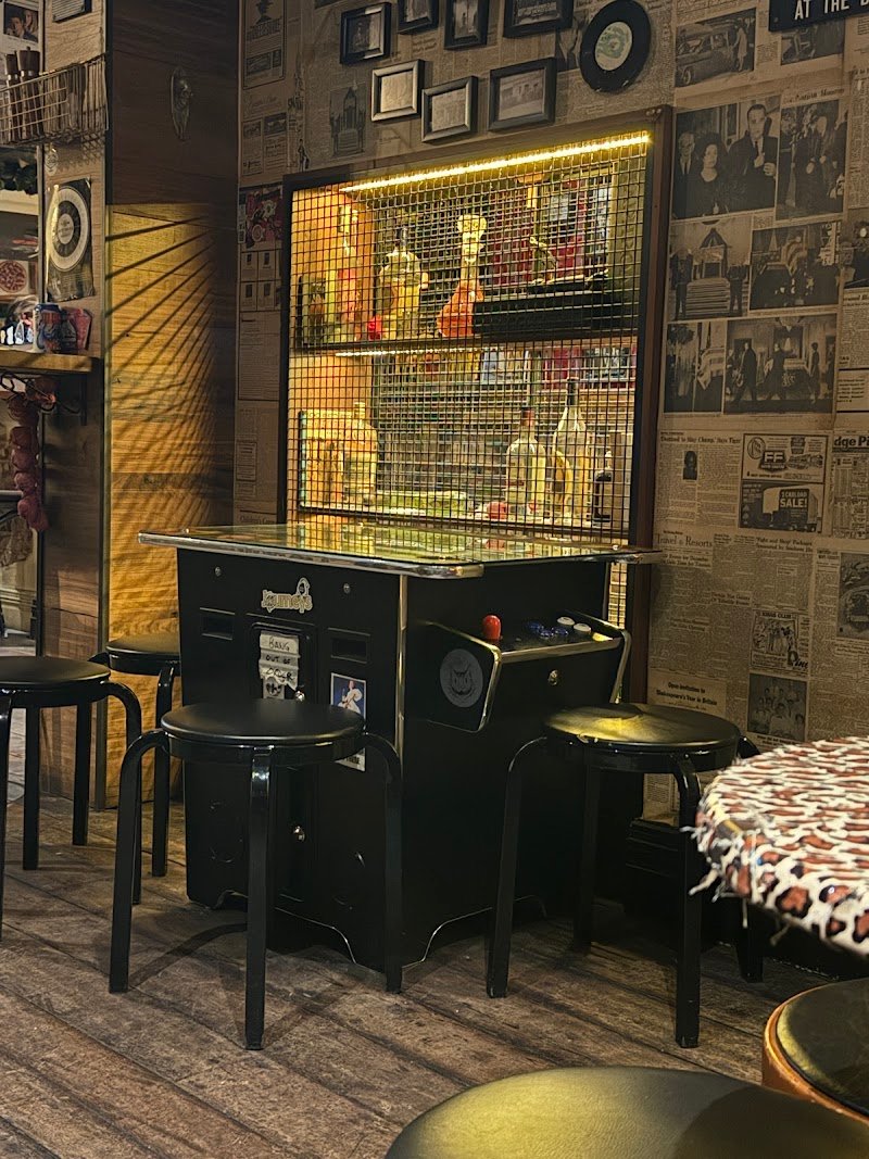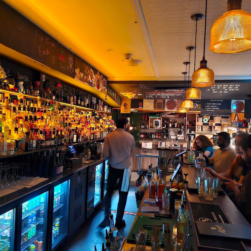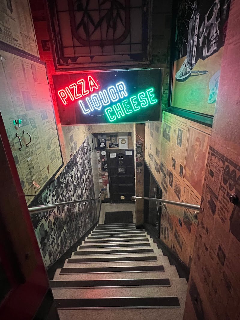 This place feels more like an underground bar that happens to serve pizza. There arenโt many pizza options on the menu, but the one we ordered was absolutely delicious, with a very unique, crispy style that really stood out. The bar has a dark, underground, and intimate vibe, perfect if you enjoy moody spaces. I wouldnโt recommend it for anyone who dislikes enclosed places, as there are no windows at all. Itโs a great option for late-night dining, especially when most other places are already closed. A small door with a neon sign showing the barโs name catches your eye in the middle of a dark street, mysterious and inviting.