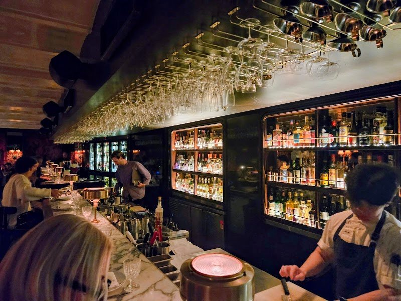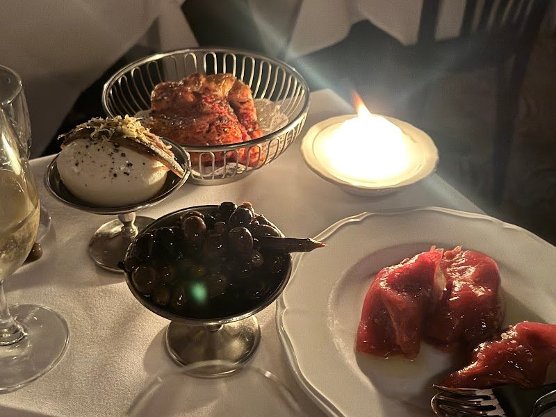 Loved it here! Behind an unassuming, discreet door with a seahorse handle, lies a moodily lit Italian restaurant with a speakeasy sensibility, wrapped in deep reds and black and cool tunes. We sat at the bar, 2 of us, I believe if there's 3+ you'll be given a booth. Highly recommend the bergamot groppino and tuna caponata, and whatever that torta dessert is. Also, deep fried olives!?! Ymm 👌