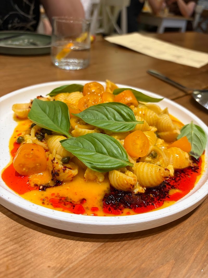Great service, super friendly staff, delicious food and nice wine list. The menu isn't overwhelmingly long and busy, which is great. (Under promise / over deliver) The food was great, however, I have only one suggestion to make it even better... When your pasta sauce is so incredible (that chilli shellfish bisque is to die for) to not give a tiny bit of focaccia in the end to clean the plate is criminal. I didn't lick my plate because my wife was there and I didn't want to embarrass myself, but I was dying for a small piece of focaccia.