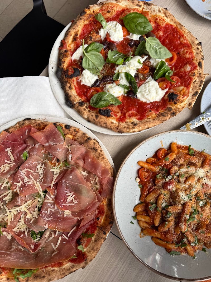 Canโt fault this place my first visit ! Last time couldnโt get in ! We had a pasta a pizza house wine and a spritz it was all delicious ! Loved the little touch of the complimentary breads and cheese - service was swift and smart - do yourself a favour and book a table today !