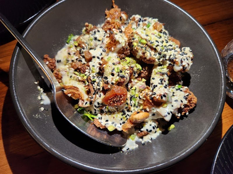 A hidden gem recommended by a friend. Staff was really friendly, and the atmosphere was very welcoming. The Chermoula chicken and the fried cauliflower took the prize. The chicken was succulent and the accompanying flavors were just chef's kiss. I wanted more and more of the cauliflower, it was the most satisfying appetizer I've had in a long time. I was pleasantly surprised by how they managed to make the lentils so unique and hearty. The poached pear and baklava dessert was nice but I wouldn't say it stood out as a dessert for me.