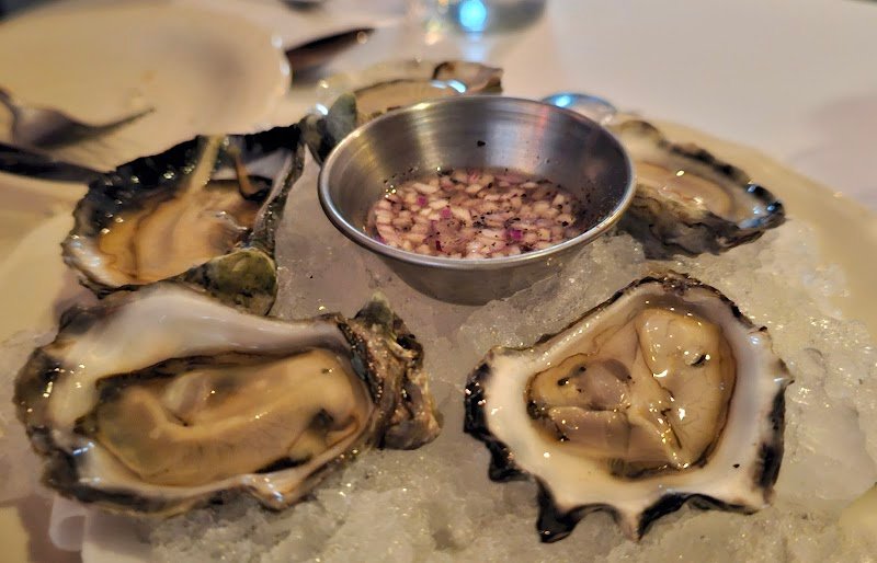 Catching up with my friends โ one is a chef, and the other loves cooking. My friends started their meals with oysters with white balsamic dressing. We then shared a veal tongue and scamorza sandwich, which was incredibly tasty and highly recommended. Another entrรฉe was tuna crudo with tonnato dressing and Sardinian crisp bread โ fresh, flavourful, and refreshing. My favourite dish was the fried eggplant with tomato jam and salted ricotta. It was perfectly crunchy and light on the outside, while juicy and full of flavour inside. A special highlight was when a chef came out from the kitchen with zucchini flowers filled with five cheeses and anchovy, kindly offering them for us to try โ such a thoughtful touch. For mains, we had spaghetti with chilli and tomato (and another ingredient I canโt quite remember), cooked to perfect al dente and delicious - gotta have it with their pickled chilli oil. We also shared the whole yellow belly flounder with vongole and sea blite, which was outstanding โ especially the sauce. On the side, we enjoyed a rocket salad with shallots and aged balsamic, along with chips seasoned with rosemary salt and served with truffle aioli. For dessert we had coffee granita with mascarpone on top. Just like eating cold tiramisu but lighter and refresher. I really like the simple and honest look of the food and plates. ๐ The service was absolutely pleasant from start to finish. I will definitely have to bring my husband here next time๐.